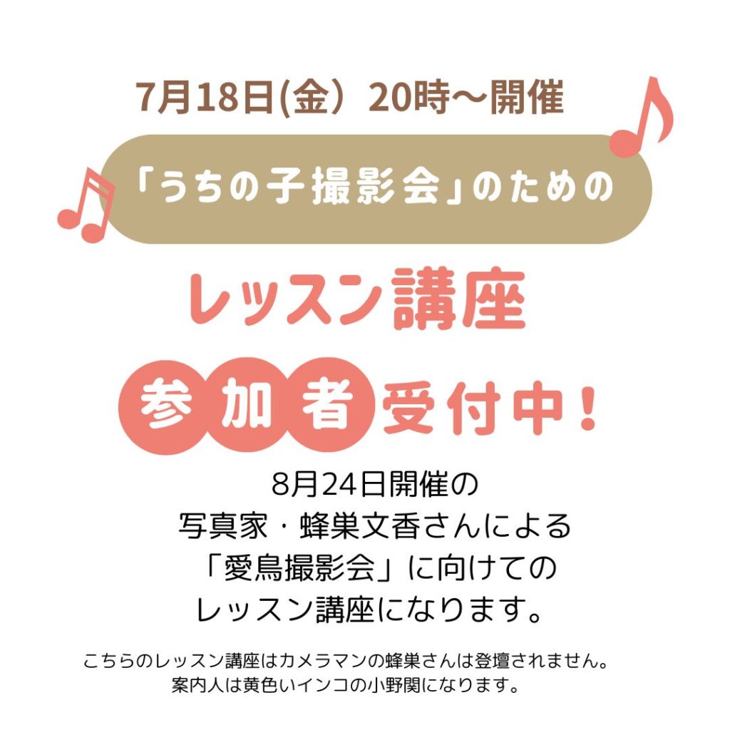 (こちらのレッスン講座はカメラマンの蜂巣さんは登壇されません。案内人は黄色いインコの小野関になります。)