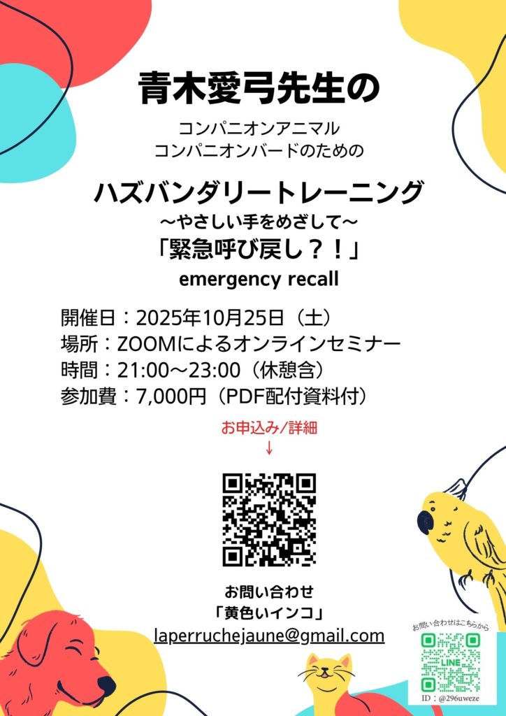 飼い主様と愛鳥さんが楽しく暮らせるよう、トレーニンや看護についてのセミナー、講義情報をお知らせします。
