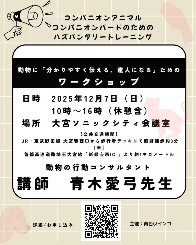 ※青木生は学割有。Facebookコンパニオンアニマルオールクラス内の投稿をご確認ください。